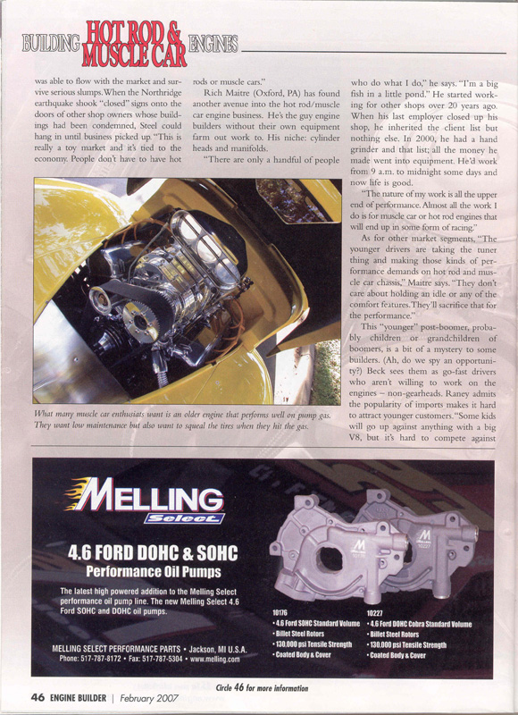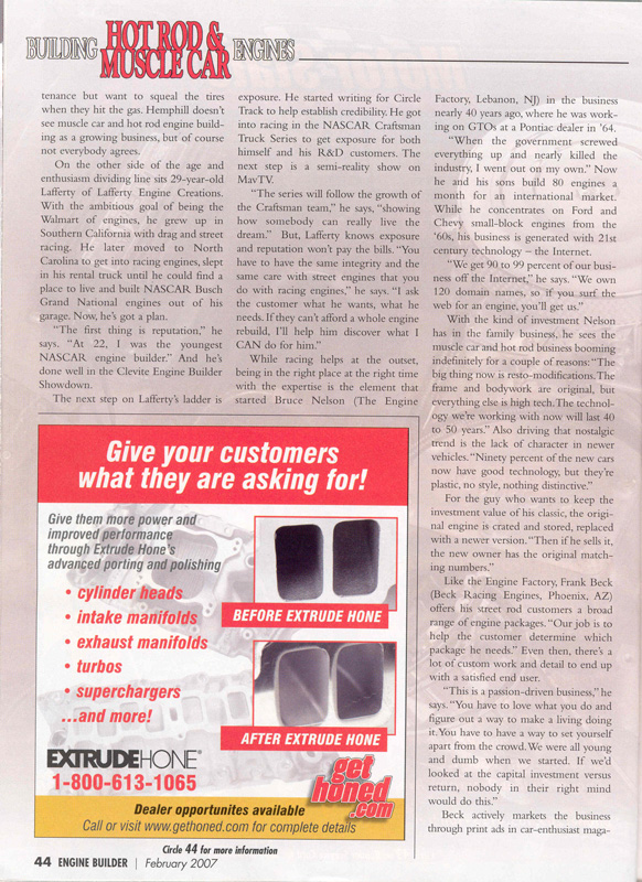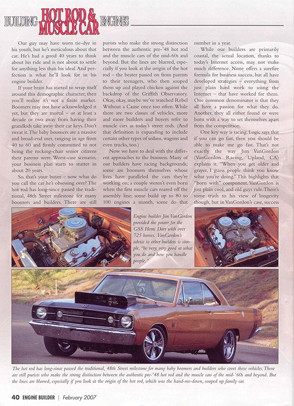 Engine Builder Magazine / February, 2007 Cover & 7 Page Feature